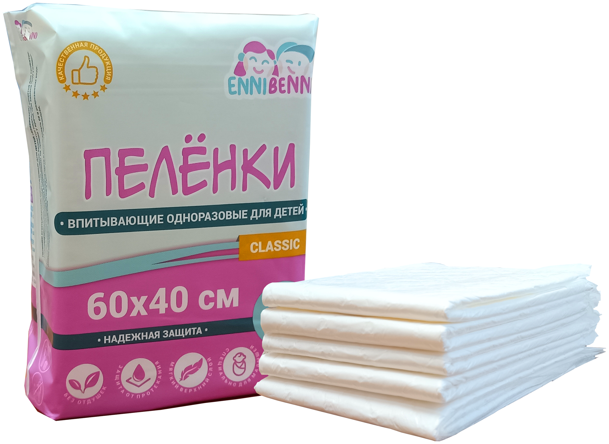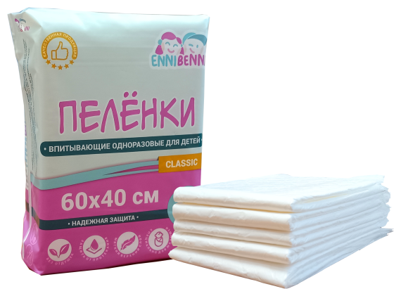 Пеленки впитывающие одноразовые для детей «ENNIBENNI» 60х40/5 шт. Classic информация: