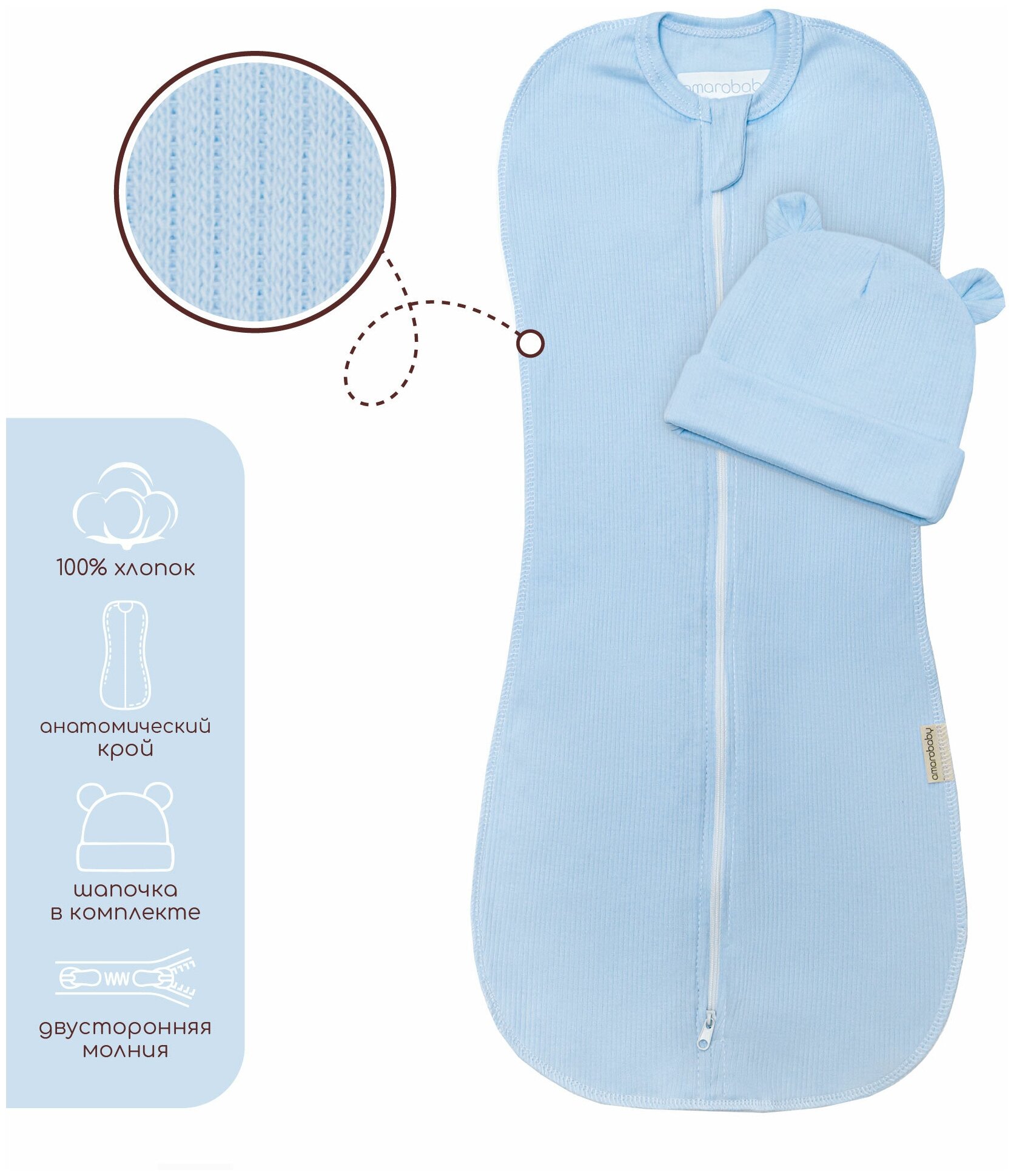 Пеленка-кокон на молнии с шапочкой Amarobaby Fashion, голубой, размер 56-68 информация: