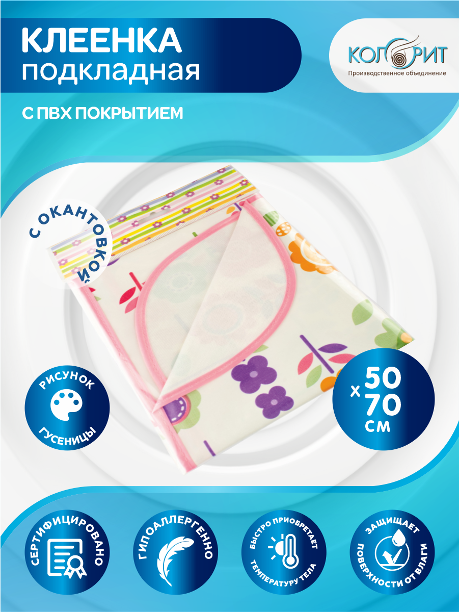 10 цен на Клеенка подкладная с ПВХ покрытием Колорит с окантовкой 0,5 х 0,7 м. рисунок гусеницы