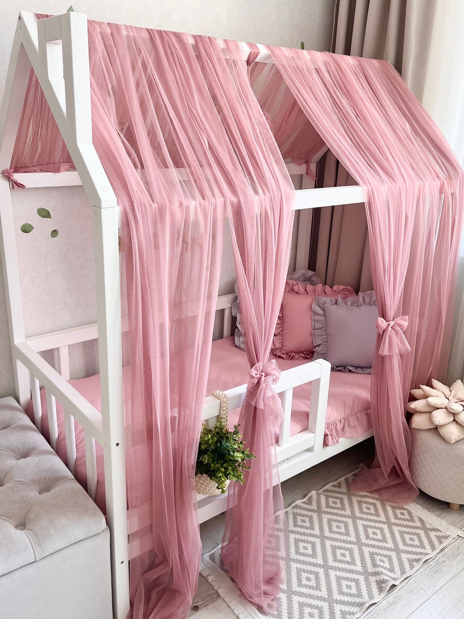 Балдахин на кроватку домик 80/160 см, размер М - розовый