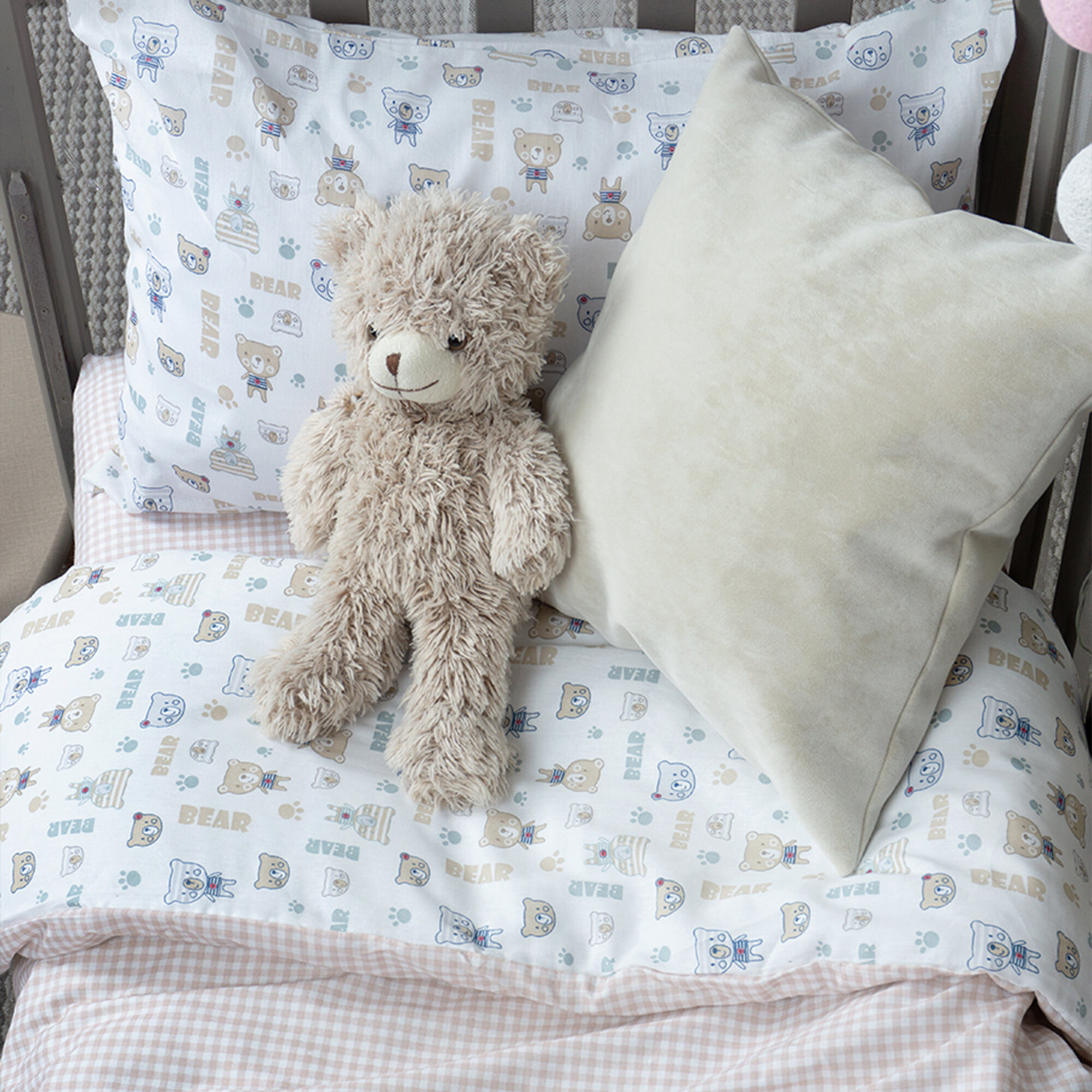 Отзывы на Комплект постельного белья в кроватку Galtex компаньон простыня на резинке: Полосатые мишки на белом фоне/Клеточка бежевый
