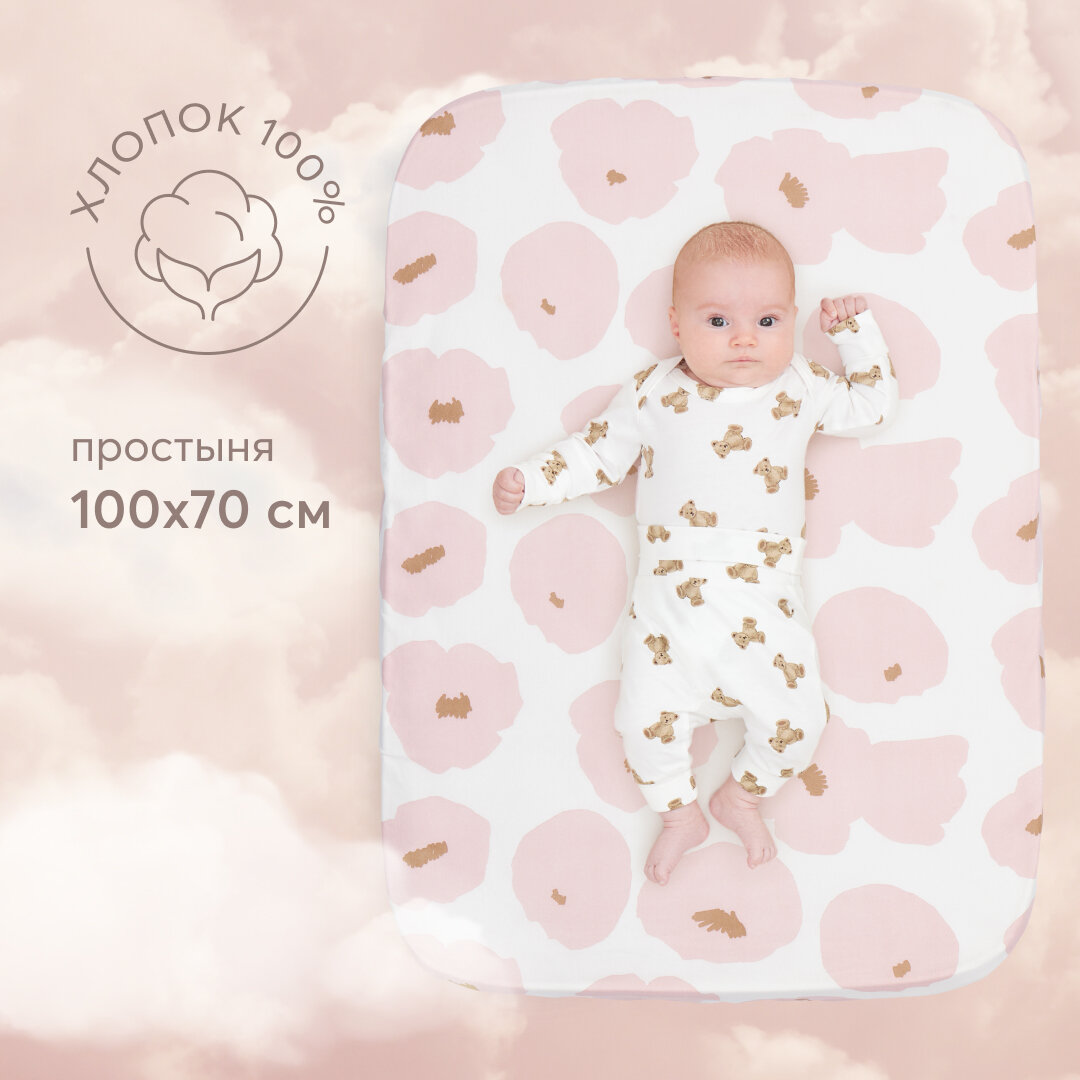 Отзывы на 87546, Простыня на резинке 100х70 Happy Baby поплин (100% хлопок), детское постельное белье, розовая