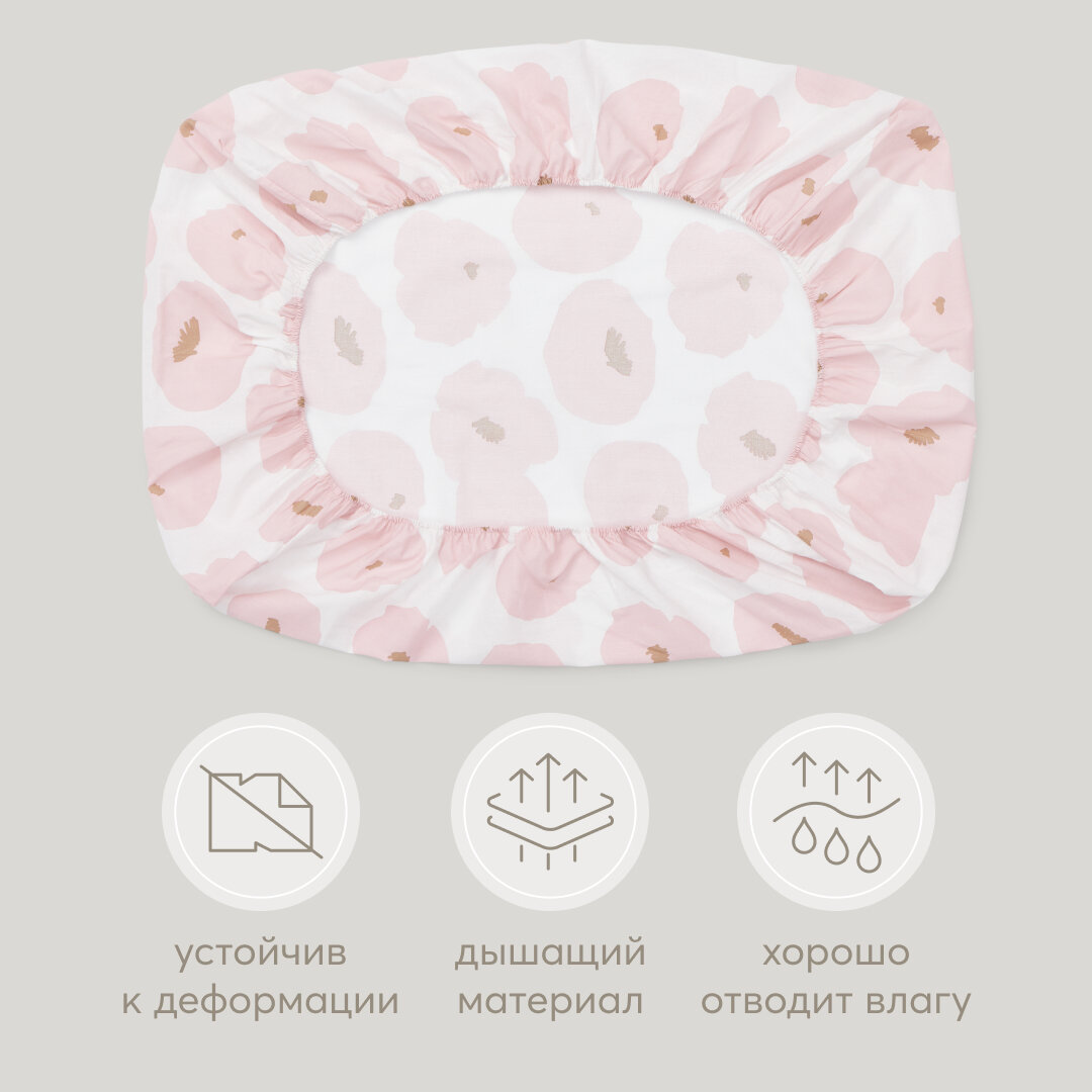 87546, Простыня на резинке 100х70 Happy Baby поплин (100% хлопок), детское постельное белье, розовая информация: