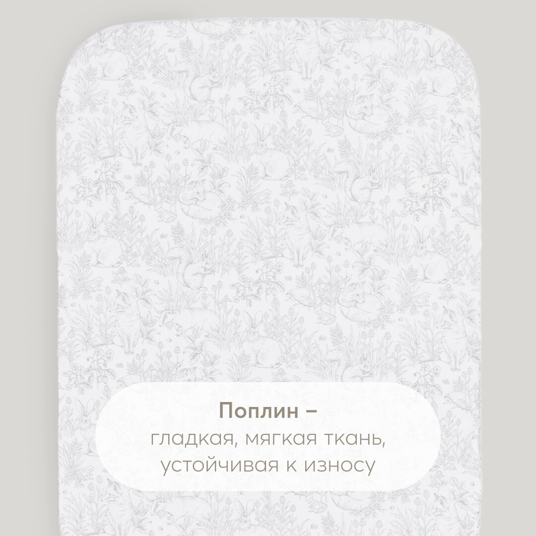 87546, Простыня на резинке 100х70 Happy Baby поплин (100% хлопок), детское постельное белье, серая информация: