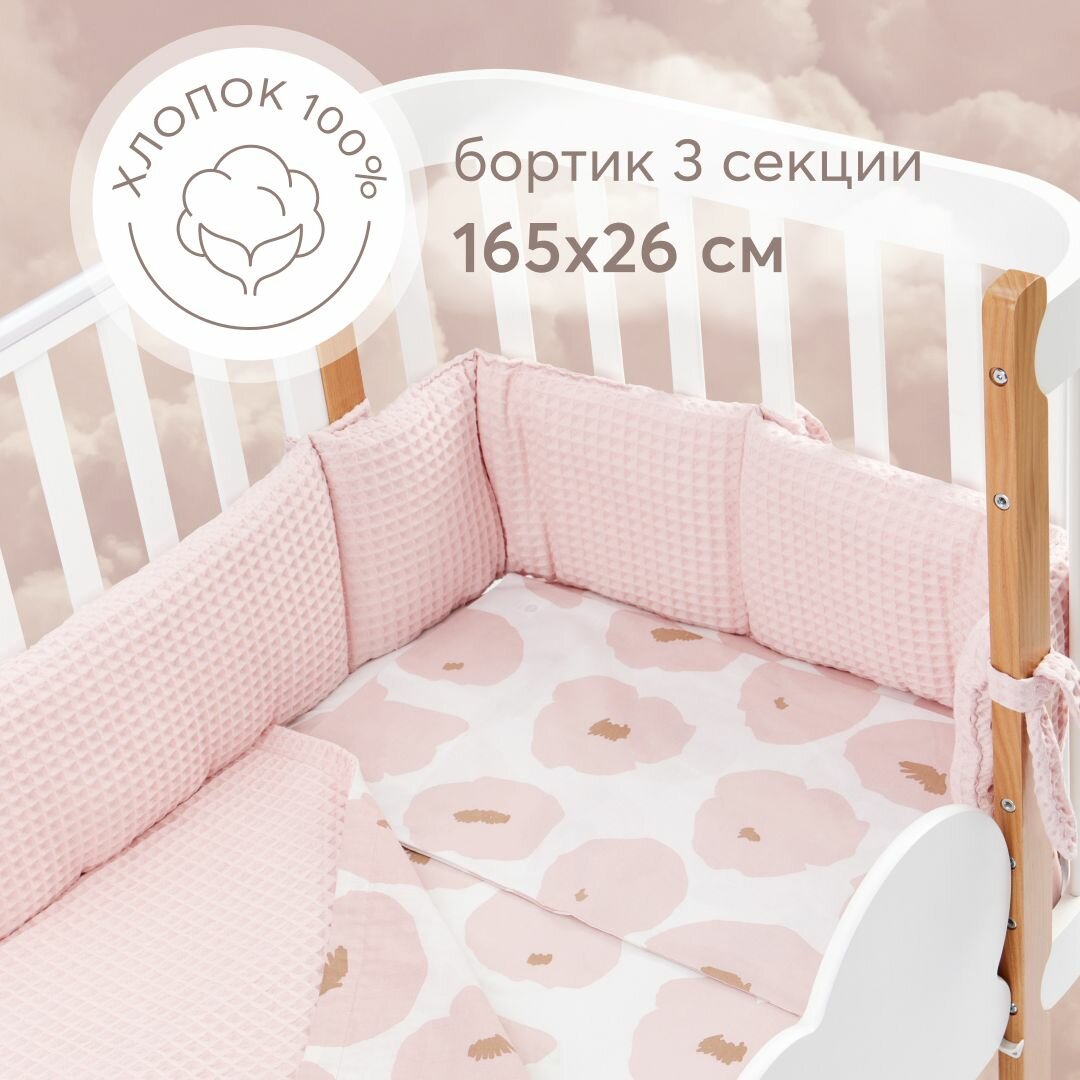 10 цен на 87555, Бортики в кроватку для новорожденных Happy Baby 165х26 см, защитный, для детской кровати, плотный и безопасный наполнитель, розовый