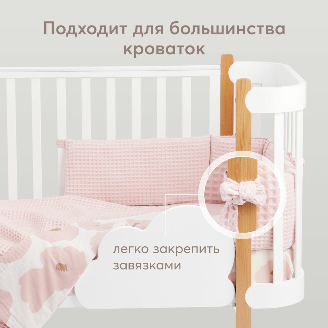 87555, Бортики в кроватку для новорожденных Happy Baby 165х26 см, защитный, для детской кровати, плотный и безопасный наполнитель, розовый информация: