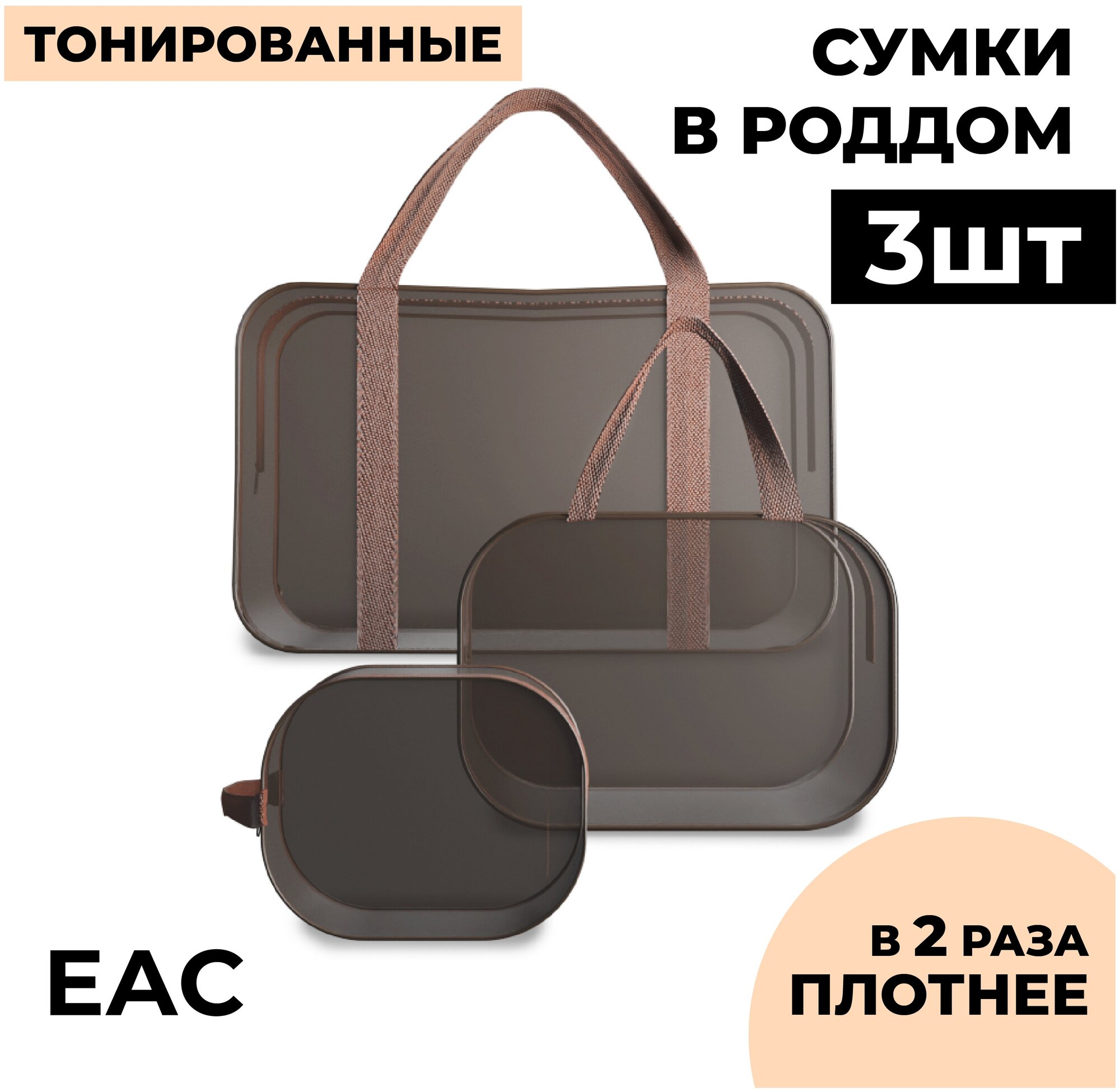 10 цен на Сумка в роддом прозрачная, Тонированная, Особо прочная, Комплект 3 шт, Готовая, Для беременных, цвет Шоколад, Братья Цыплята