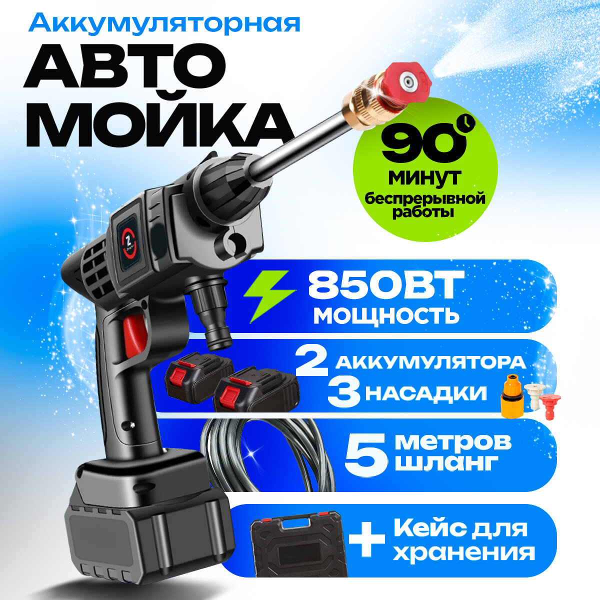 Автомойка аккумуляторная высокого давления с кейсом 2 аккумулятора. Минимойка