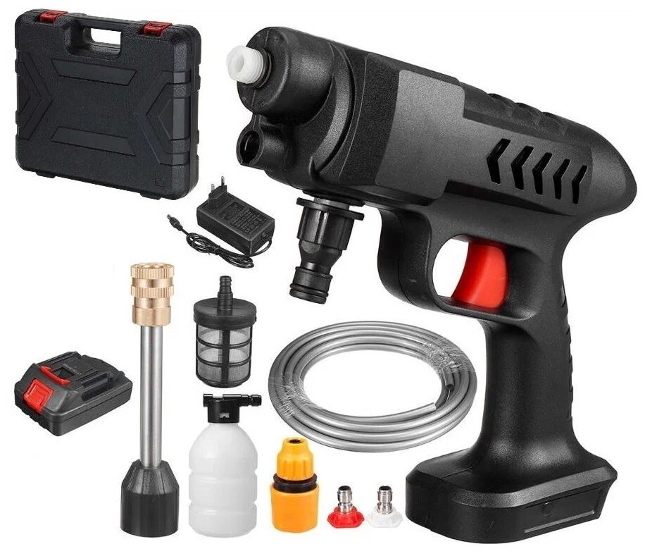 Аккумуляторная ручная мойка высокого давления с пеногенератором и фильтром для воды Cleaning Gun