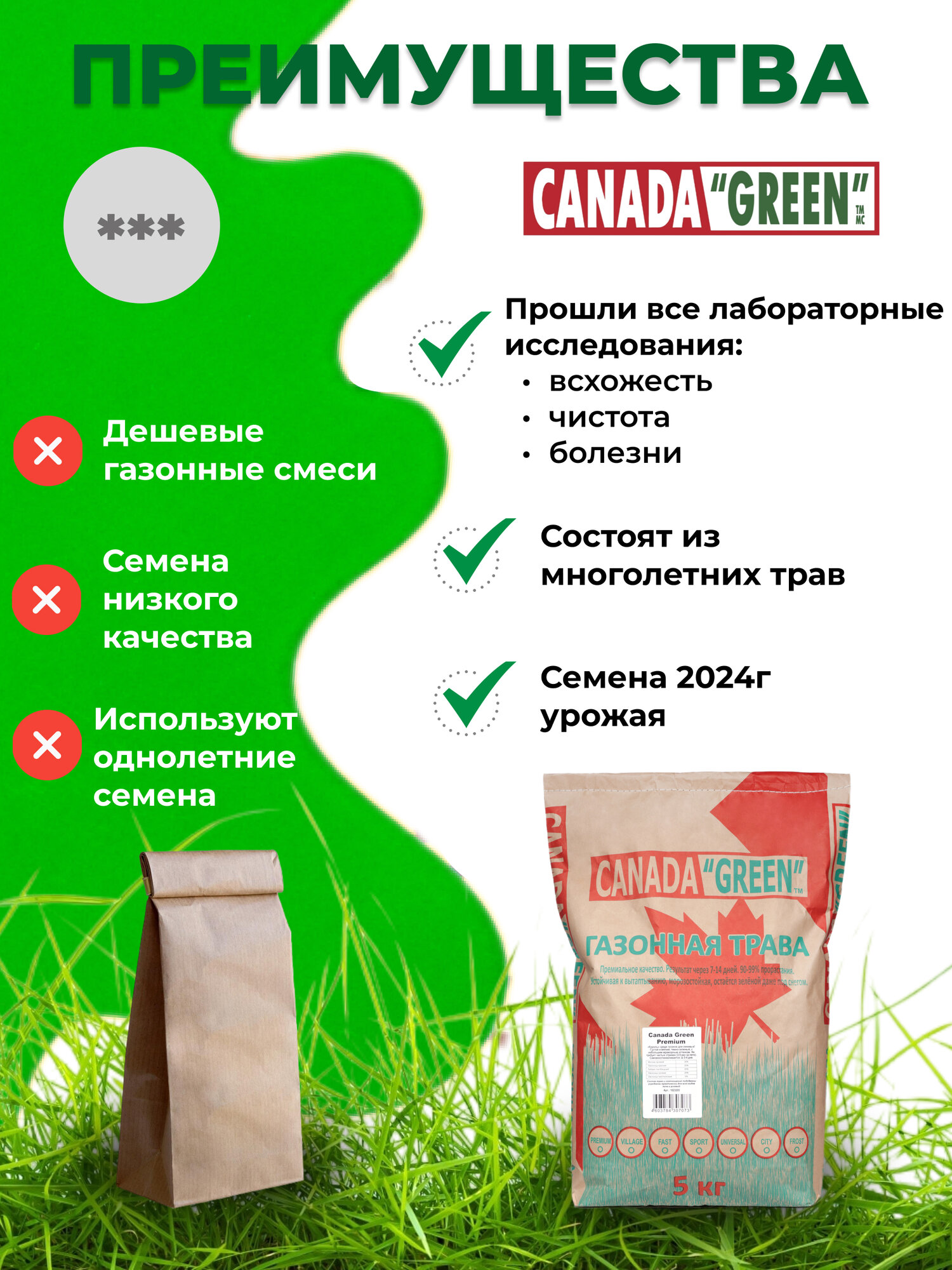 Газонная трава семена Канада Грин Премиум PREMIUM 5 кг/ мятлик, райграс, овсяница семена для газона