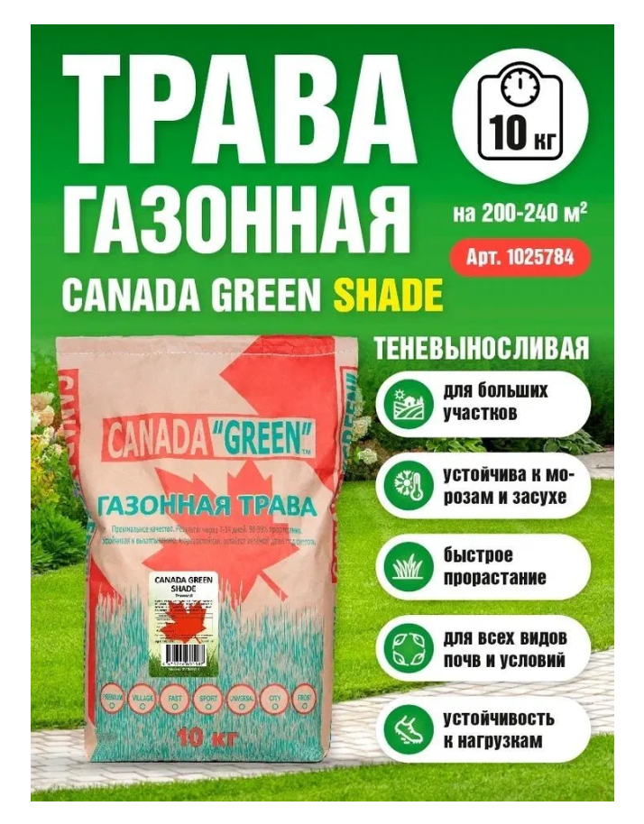 Газонная трава семена Канада Грин Теневыносливая 10кг / Теневая 10 кг / Canada Green Shade 10 кг информация: