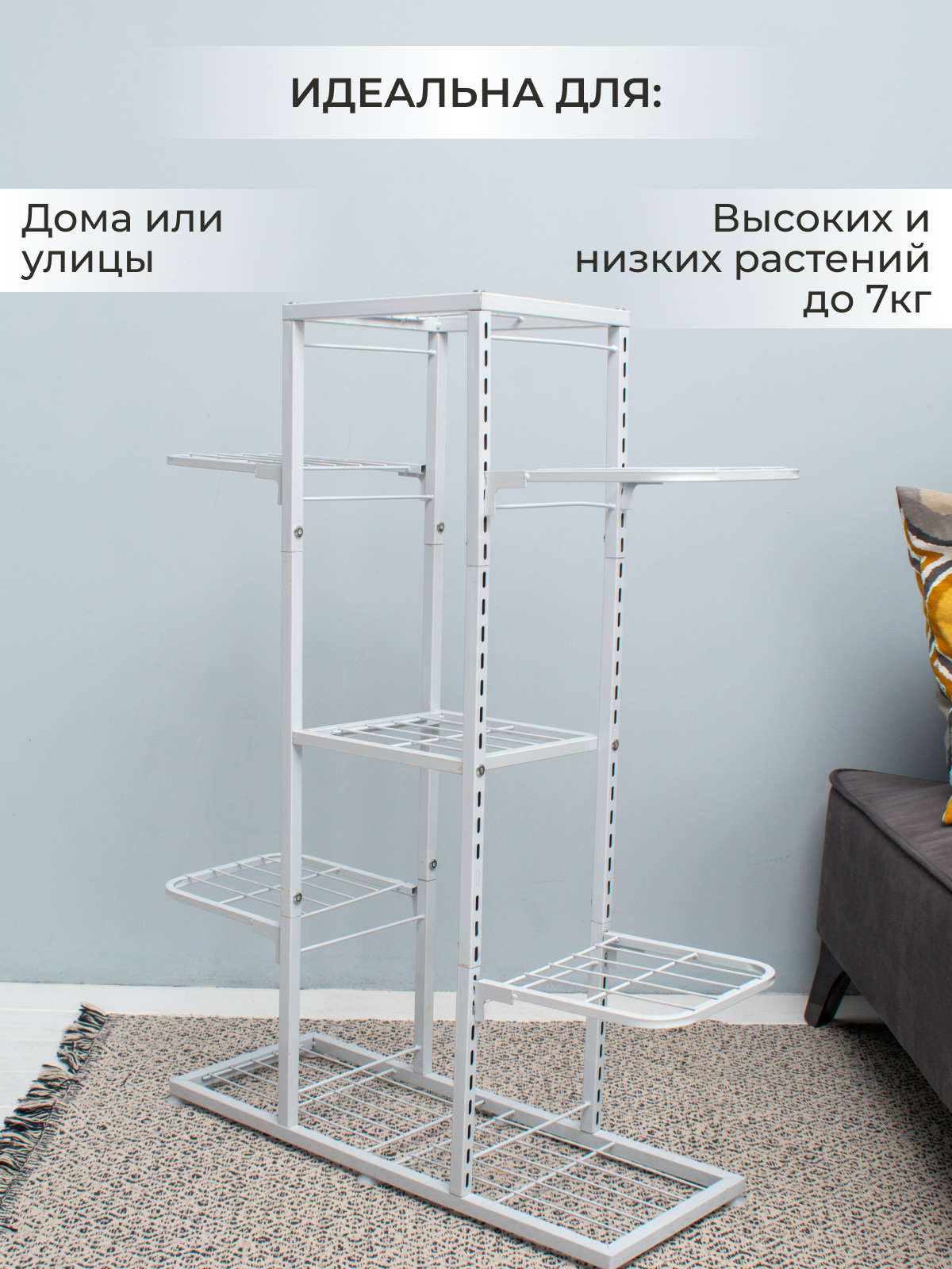 RombiLux Подставка для цветов металлическая высокая напольная или на подоконник, на 8 кашпо, белая
