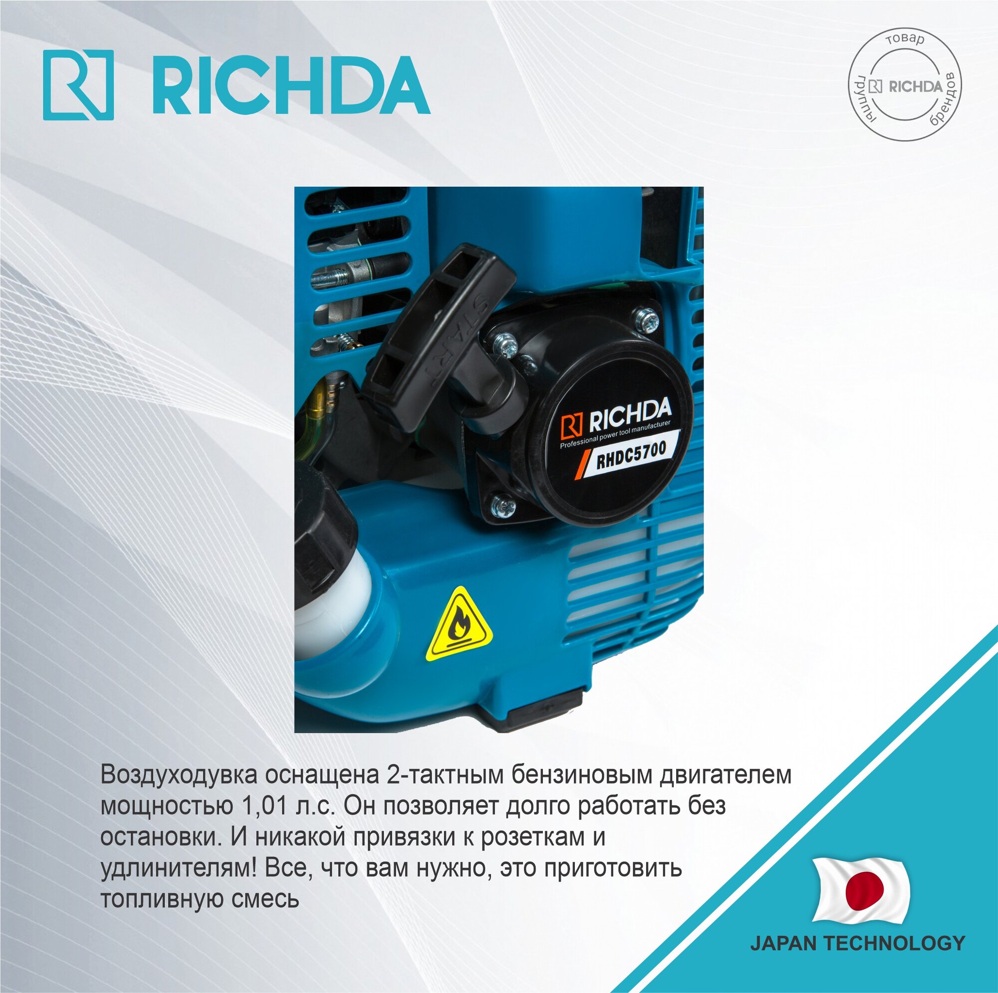 Бензиновая воздуходувка RICHDA RHDC5700 информация:
