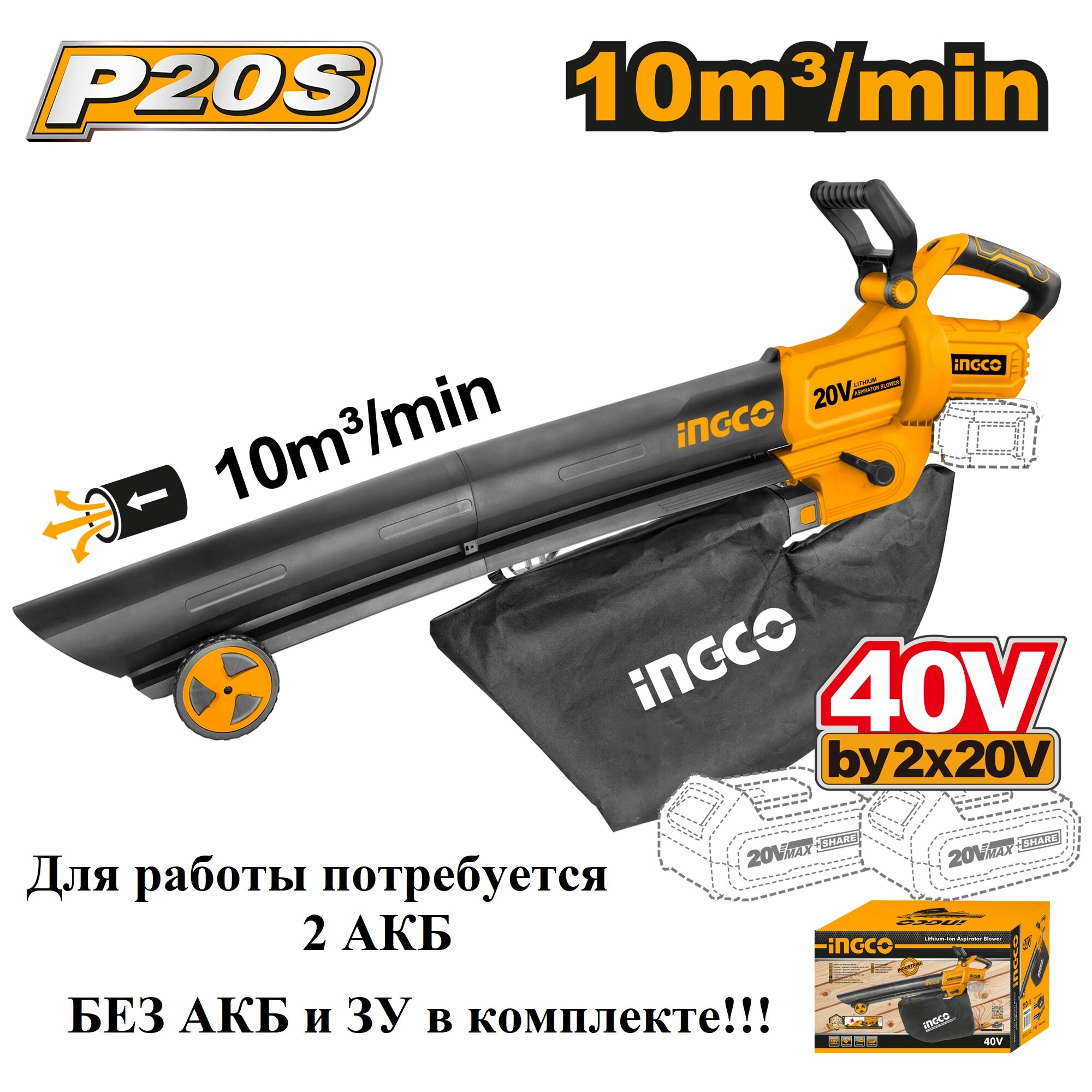 Аккумуляторная воздуходувка 40В без АКБ и ЗУ INGCO CABLI2003 INDUSTRIAL информация:
