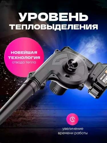 Воздуходувка портативная "Турбовентилятор", черная, Li-ion, 52м/с, 2 аккумулятора