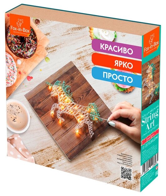 Набор для творчества Fox-In-Box Стринг Арт с гирляндой "Единорог" информация: