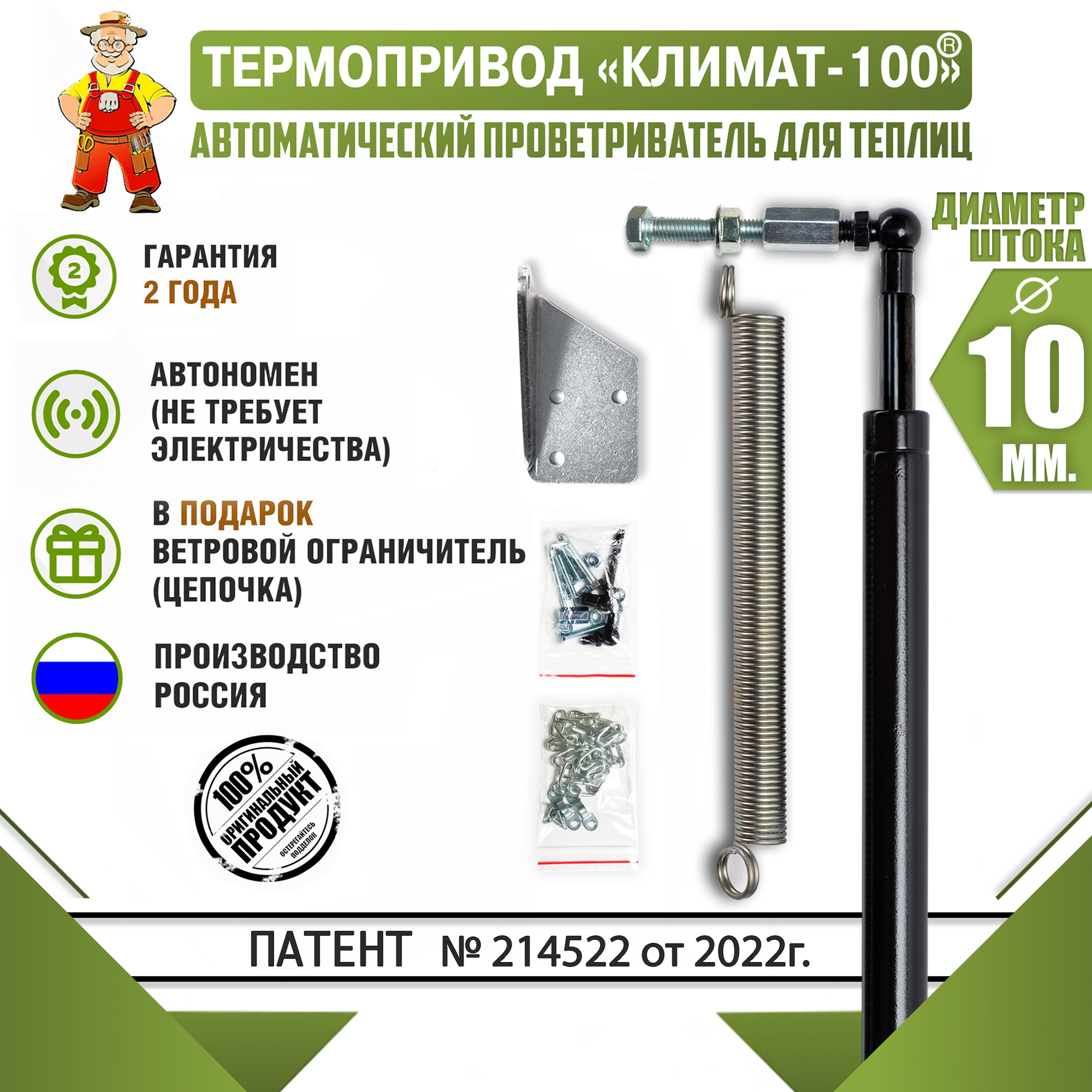 Многолетний термопривод "Климат 100". Автомат для проветривания теплиц (усиленный) информация: