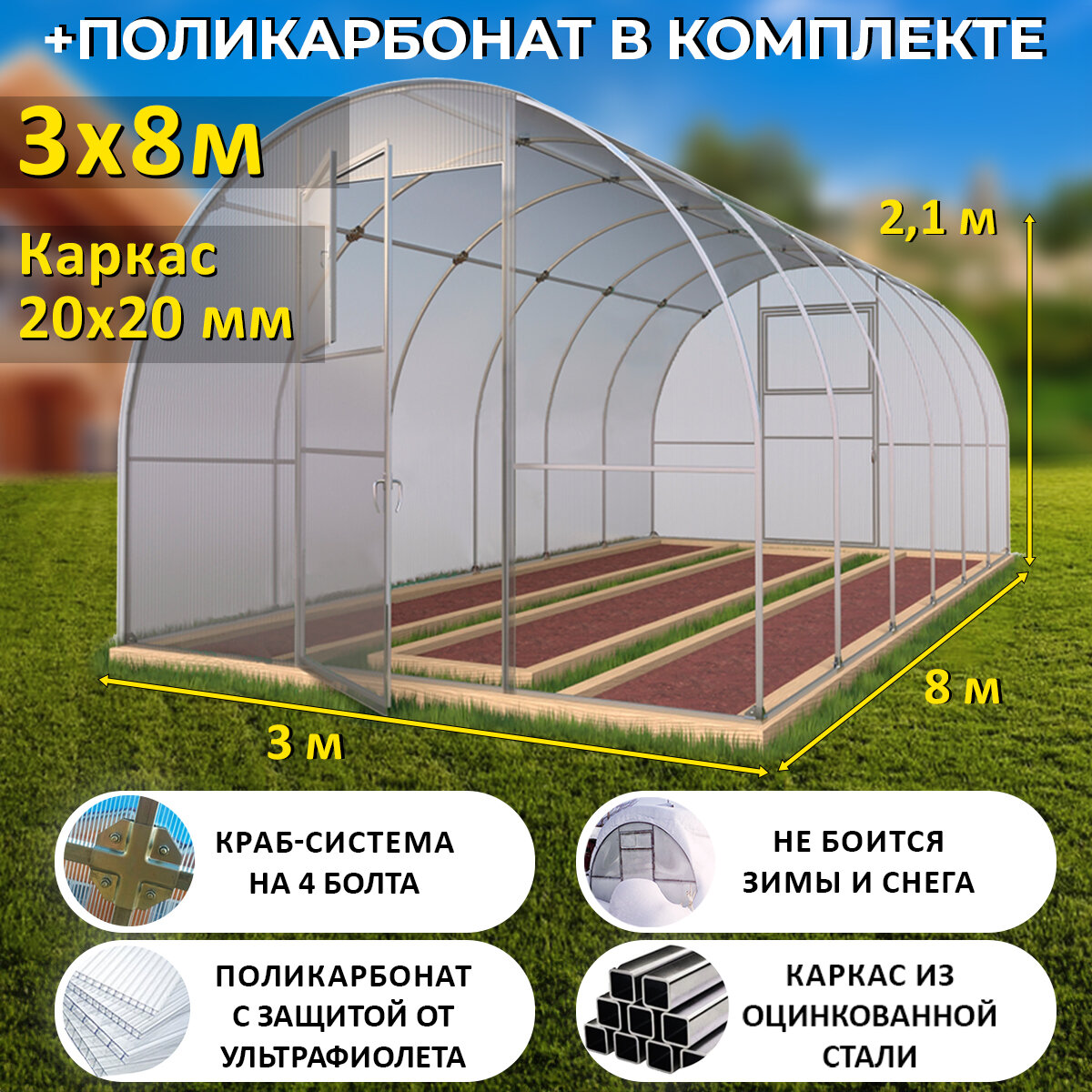 Теплица Арочная (Поликарбонат в комплекте) 3 х 8 метров, оцинкованный каркас 20х20 мм - Боярская информация: