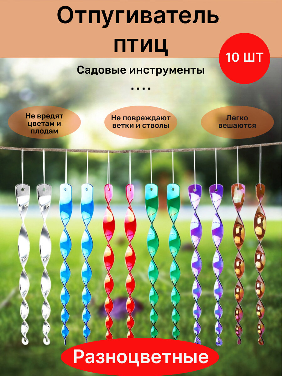 10 цен на Отпугиватель птиц вращающийся стержень. Отражающее спиральное устройство для сада, огорода и дома. Защита растений от вредителей. Разноцветные.