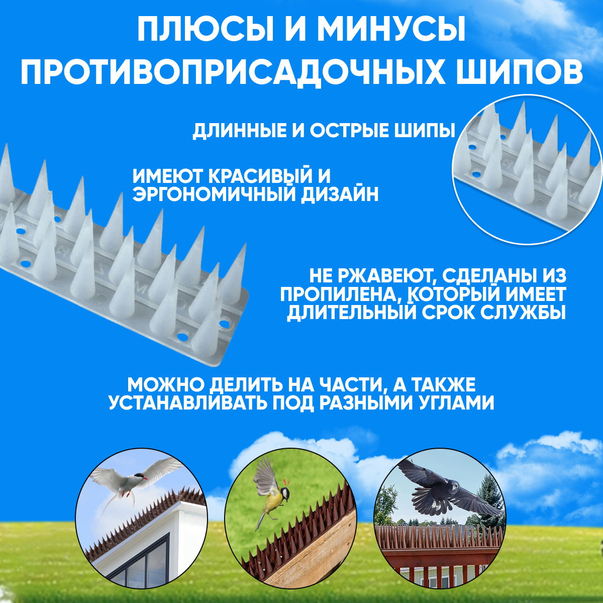 10 цен на Противоприсадные шипы 12 шт, 40х4,5х4, отпугиватель от птиц и животных, прозрачный