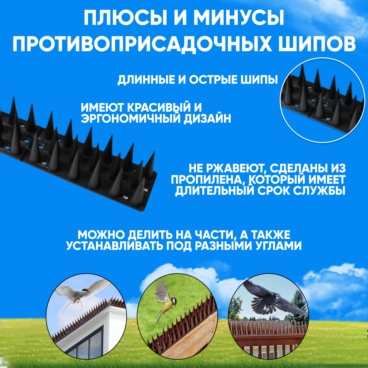 10 цен на Противоприсадные шипы 12 шт, 40х4,5х4, отпугиватель от птиц и животных, черный