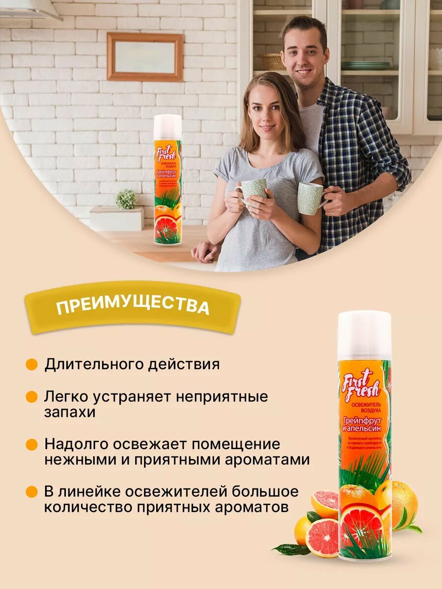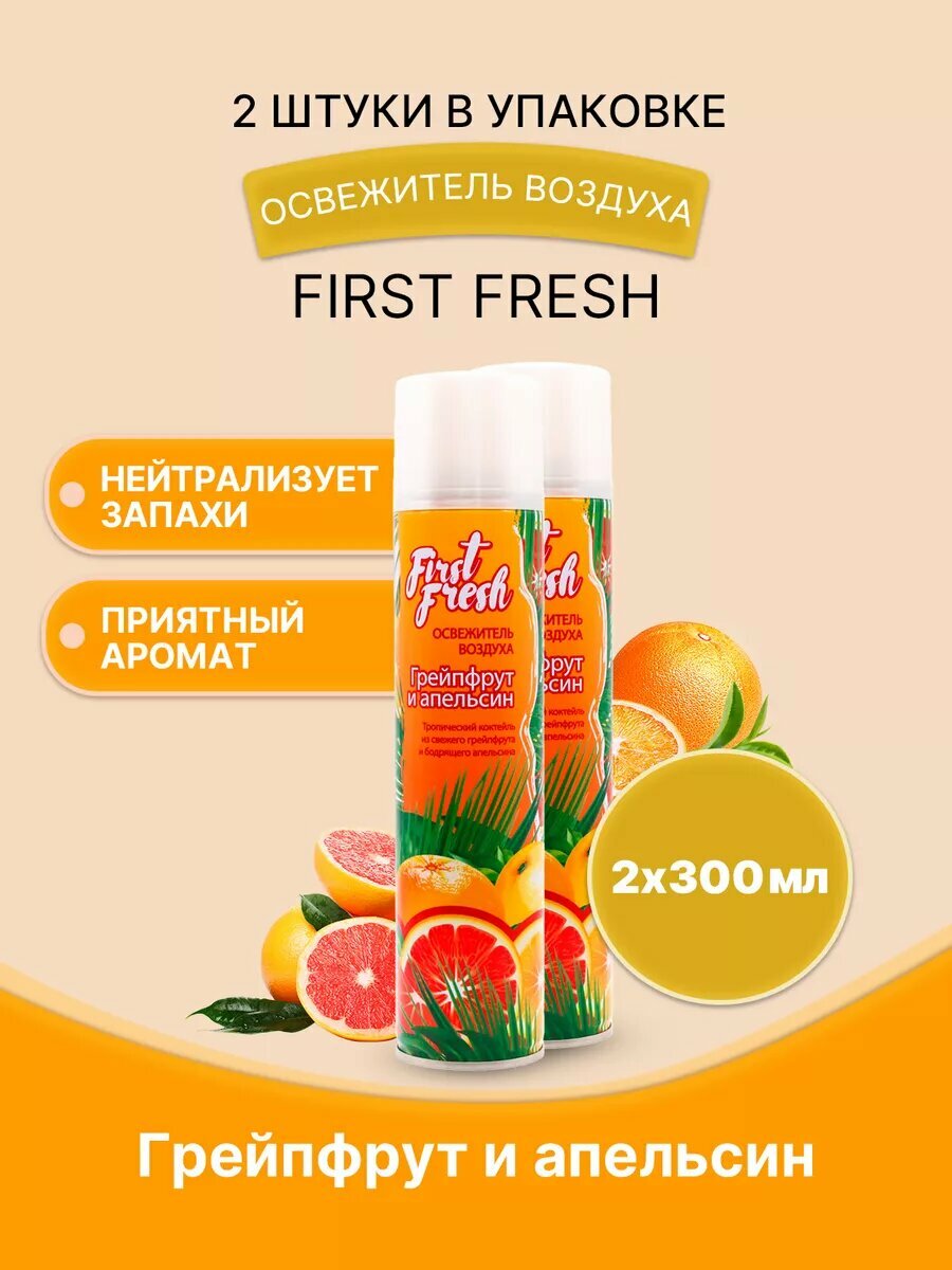 10 цен на FIRST FRESH Освежитель воздуха Грейпфрут и апельсин 300мл/2ш