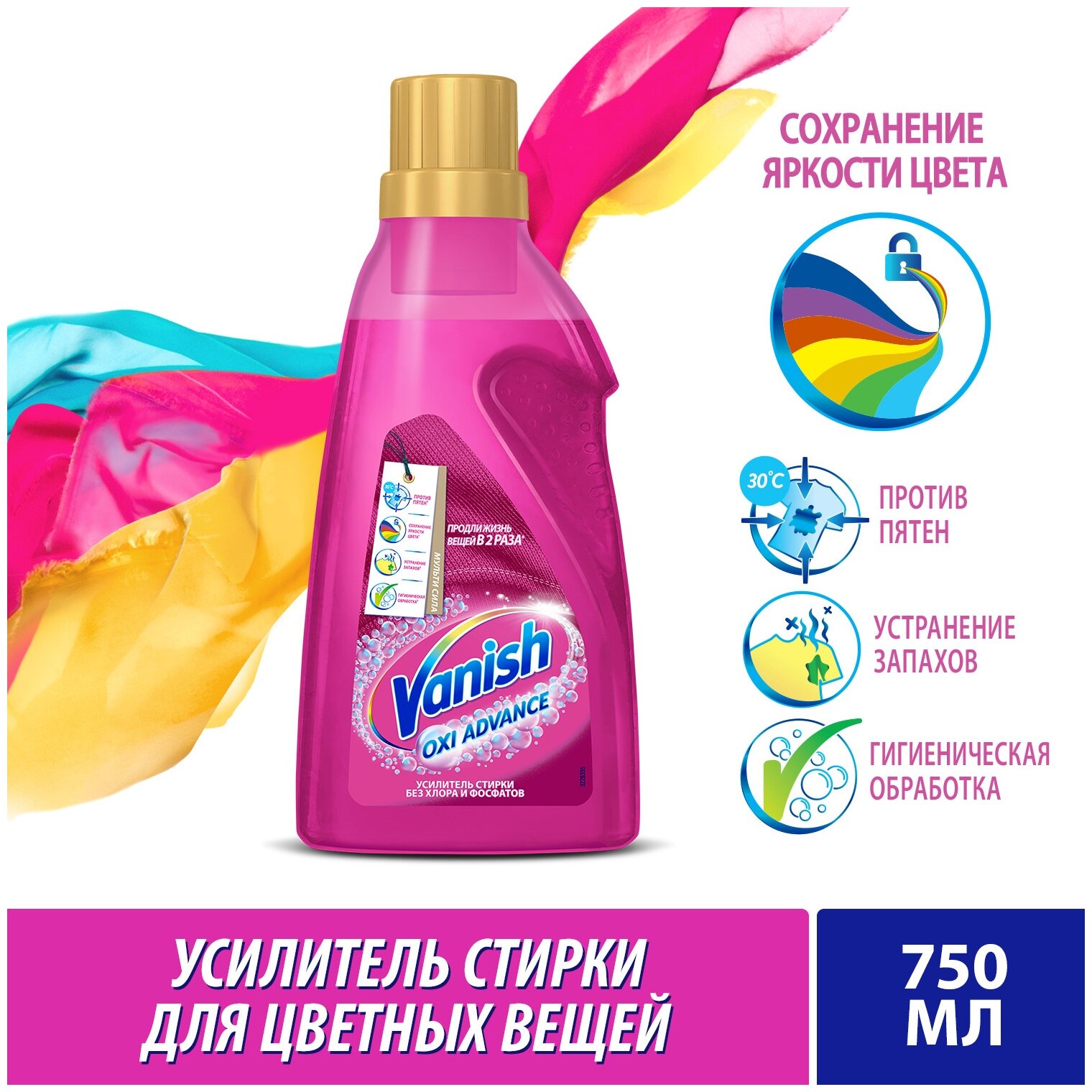 Пятновыводитель Reckitt Benckiser Vanish Oxi Advance Мультисила, гель, для цветных тканей, 750 мл информация: