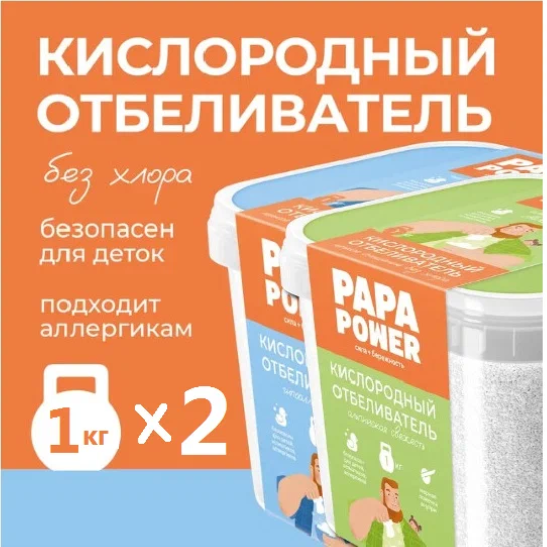 Кислородный отбеливатель PAPA Power Гипоаллергенный 100% концентрат Комплект 1 кг + 1 кг 668 ₽