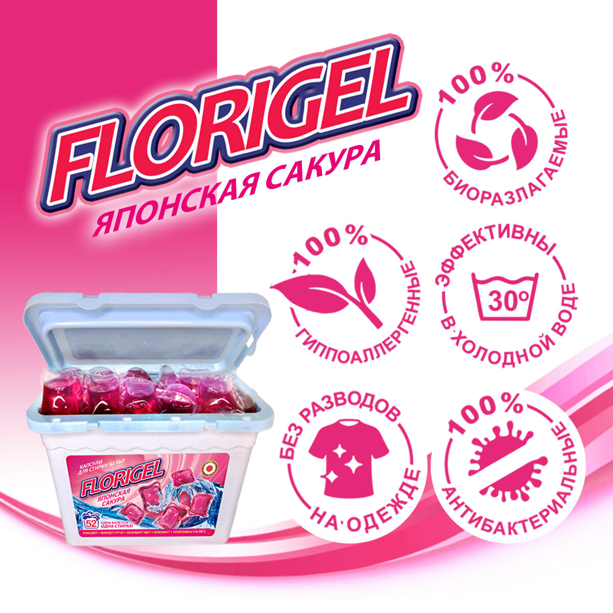 Капсулы для стирки белья 52 штуки FLORIGEL "японская сакура" короб информация: