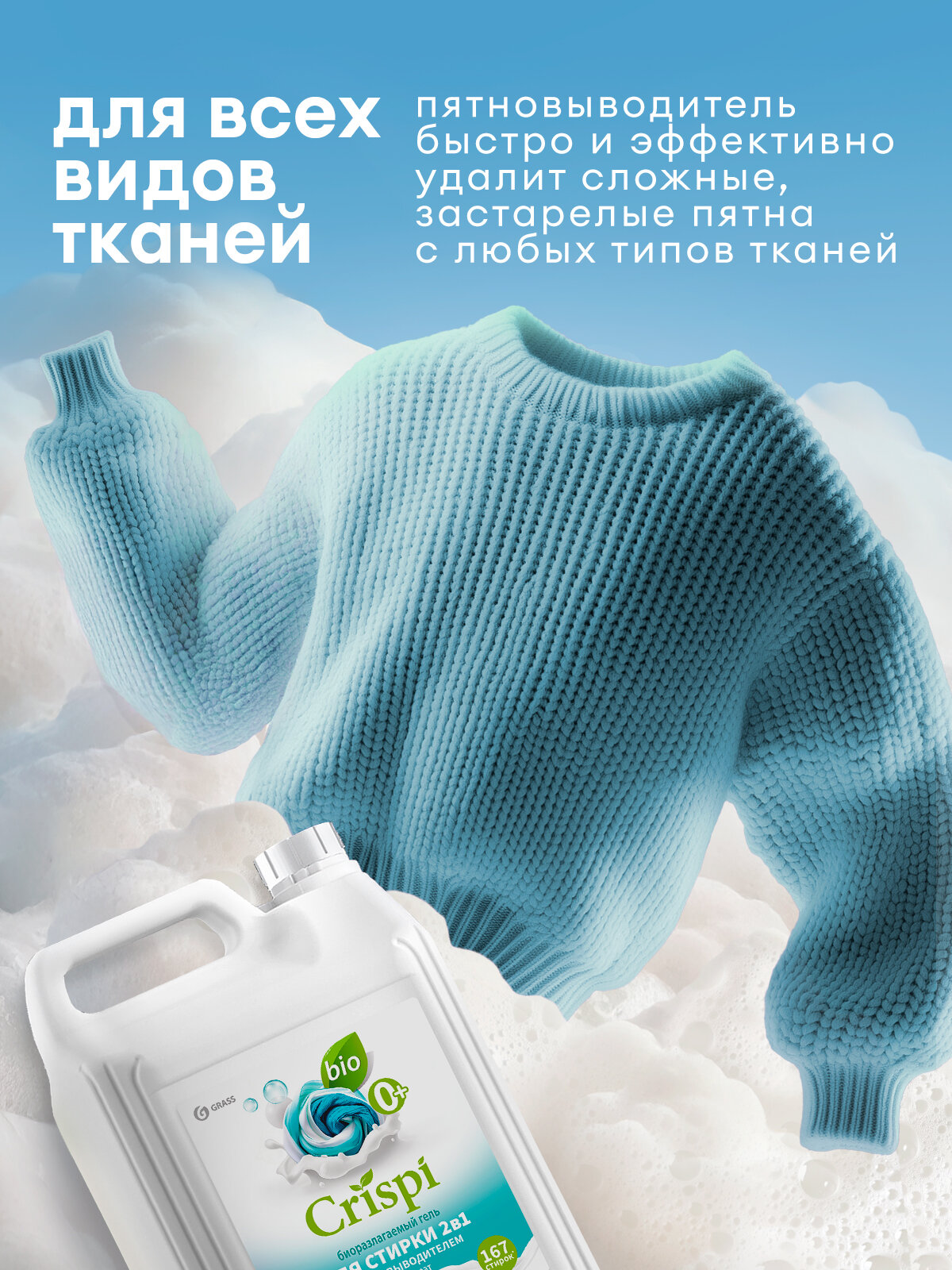 Гель для стирки Grass 2 в 1 с пятновыводителем концентрат Crispi 5 л. информация: