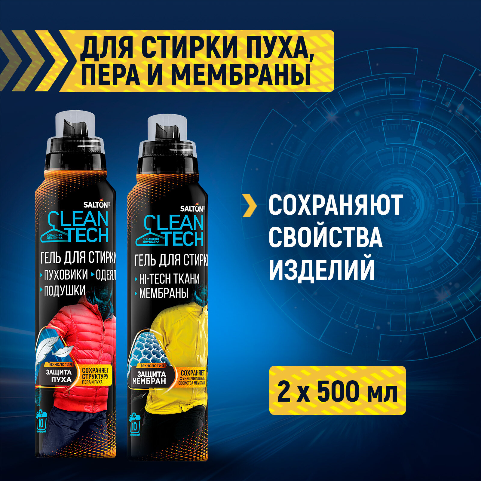 Salton CleanTech Гель для стирки мембраны, мембранной одежды 500 мл + Гель для стирки пуховиков, курток, 500 мл информация: