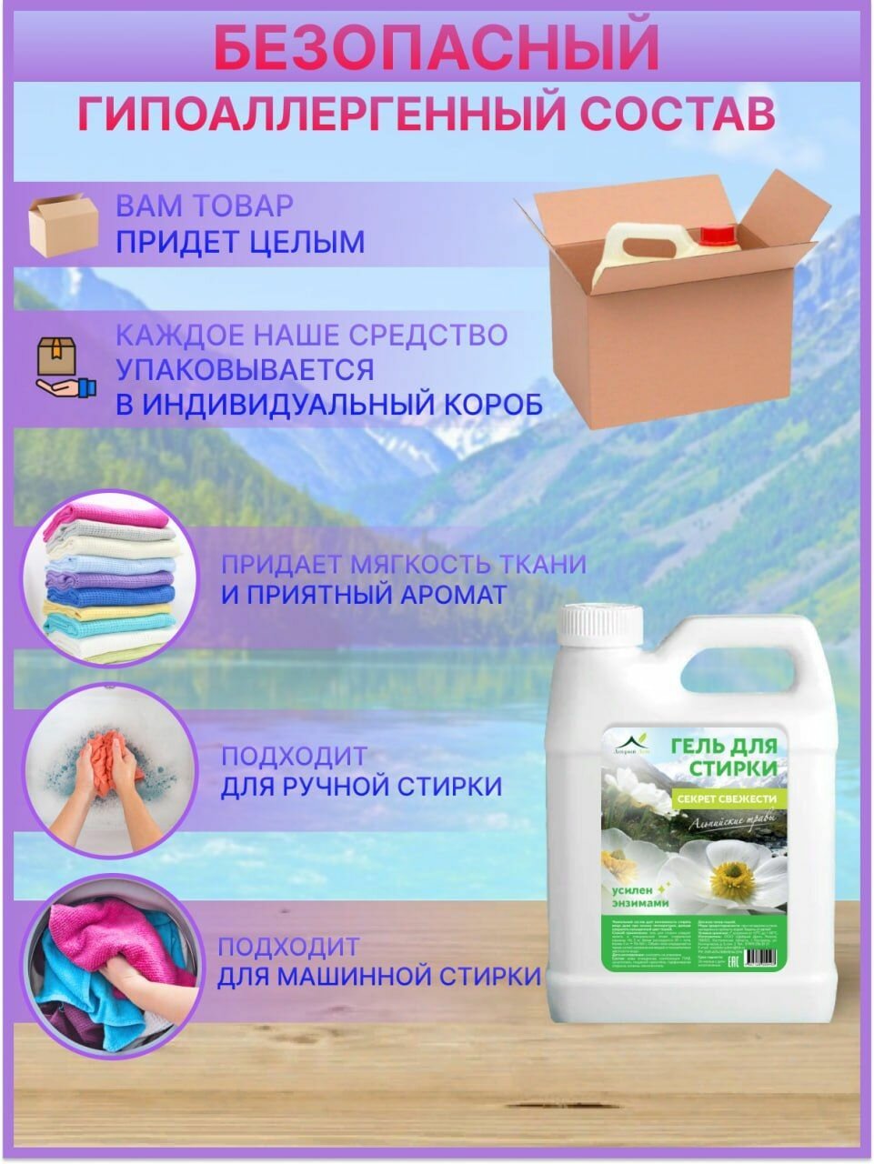 Гель для стирки белья 5 литров, универсальный, гипоаллергенный, биоразлагаемый, эко средство для стирки, жидкий порошок Альпийские травы, Добрый дом информация: