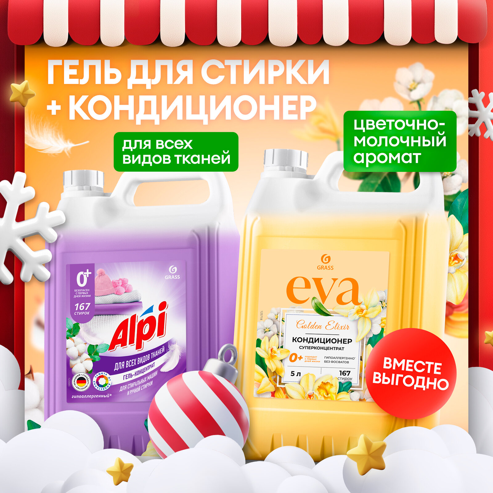 10 цен на Гель-концентрат для стирки Grass Alpi Delicate gel 5л.+ Кондиционер для белья Grass Eva Golden Elixir концентрированный 5 л.