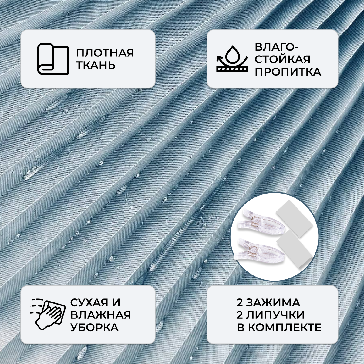 Жалюзи плиссе самоклеящиеся голубые , 120х180 см , текстильные , без сверления информация: