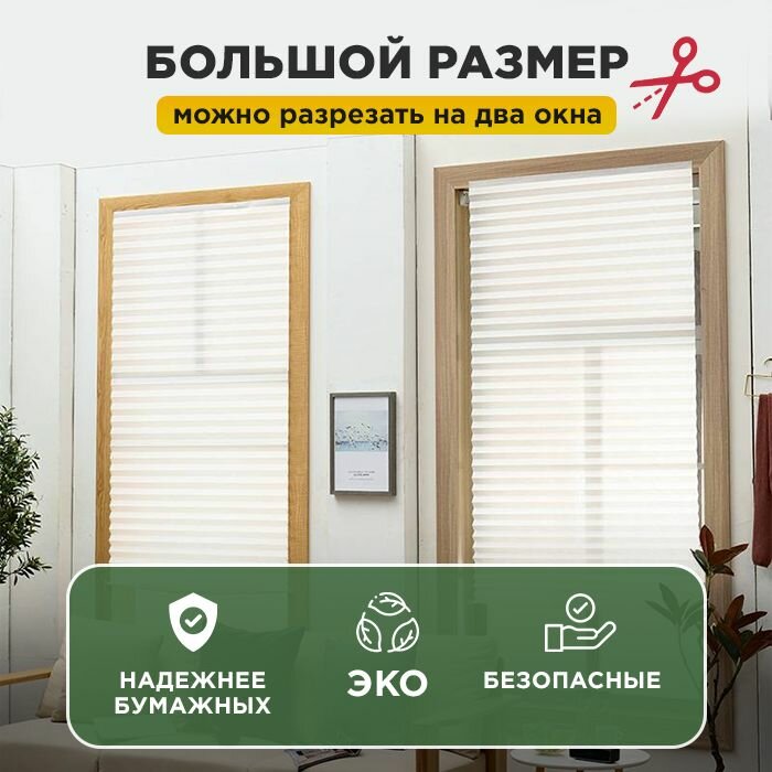 Жалюзи на окна самоклеящиеся плиссе горизонтальные 60х180 для дома, гостиной, спальни, кухни / белые 413 ₽