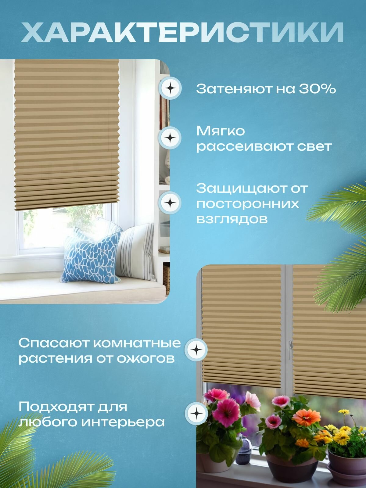 10 цен на Жалюзи плиссе тканевые на липкой ленте, 90*180см, бежевые,I Шторы плиссе текстильные на липучке I Штора от солнца I Жалюзи самоклеящиеся вертикальные I