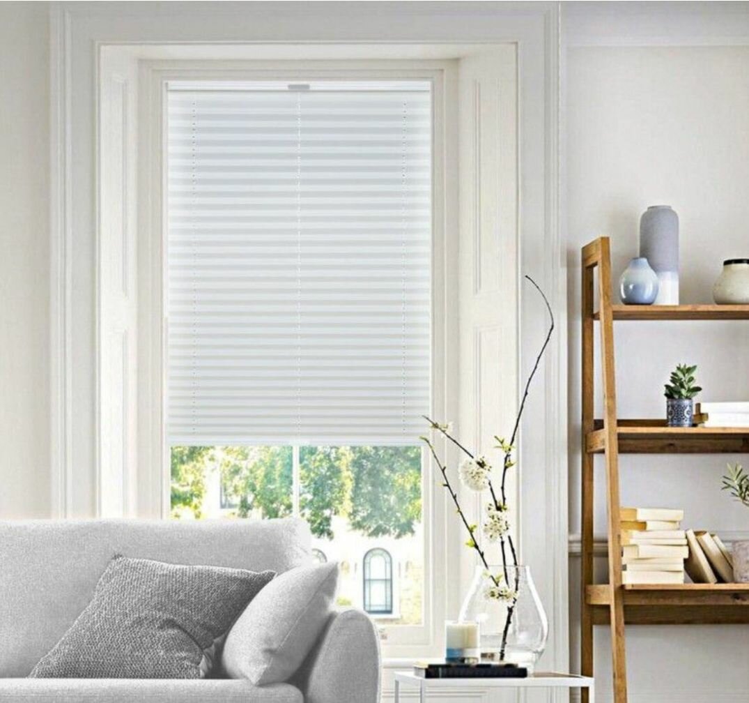 Жалюзи плиссе на окна и дверь самоклеящиеся 90х180 см полиэстер, белые 588 ₽