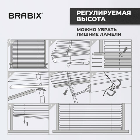 Жалюзи горизонтальные пластиковые на пластиковые и деревянные окна, 80x155 см, Brabix, белые, 606026 965 ₽