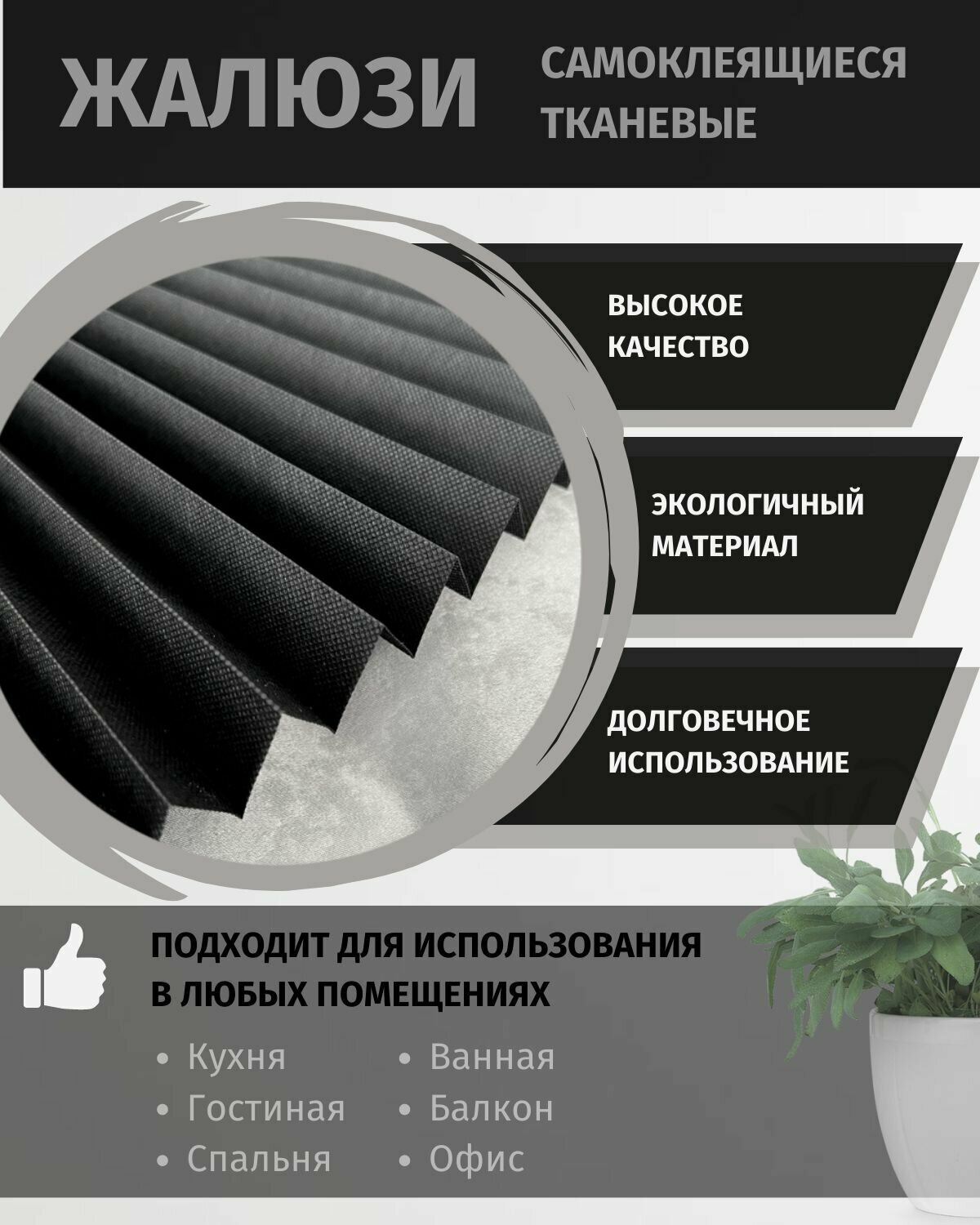 Жалюзи плиссе на окна самоклеящиеся черный 90х180, шторы плиссе на липучке, жалюзи самоклеющиеся, тканевые жалюзи, горизонтальные жалюзи информация: