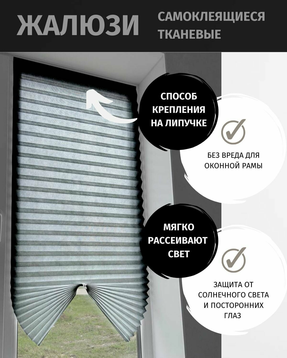 Жалюзи плиссе на окна самоклеящиеся серый 90х180, шторы плиссе на липучке, тканевые жалюзи, горизонтальные жалюзи 649 ₽