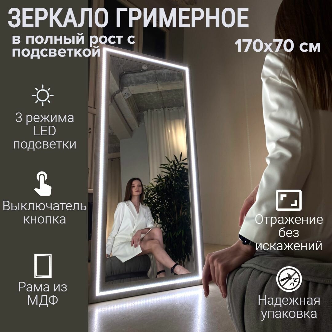 Интерьерное зеркало в полный рост 170х70 см с подсветкой. Цвет Лофт Белый. Зеркало настенное, напольное гримерное в раме 13 600 ₽