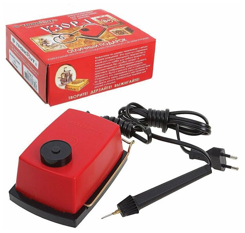 Отзывы на Прибор для выжигания по дереву и ткани Трансвит "Узор-1", 2 сменные насадки, картонная коробка