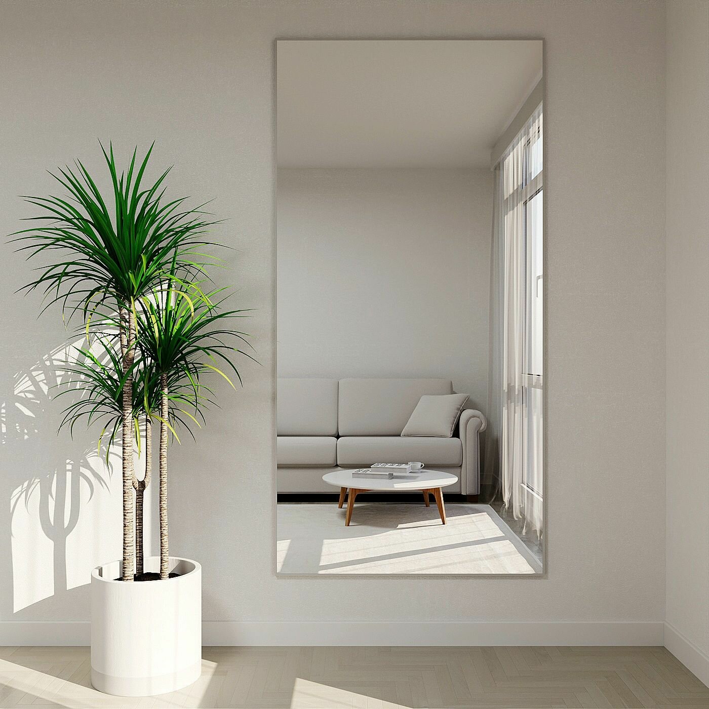 Зеркало настенное в алюминиевой раме ALUMIRROR, 170х70 см. Цвет: Белый 8 700 ₽