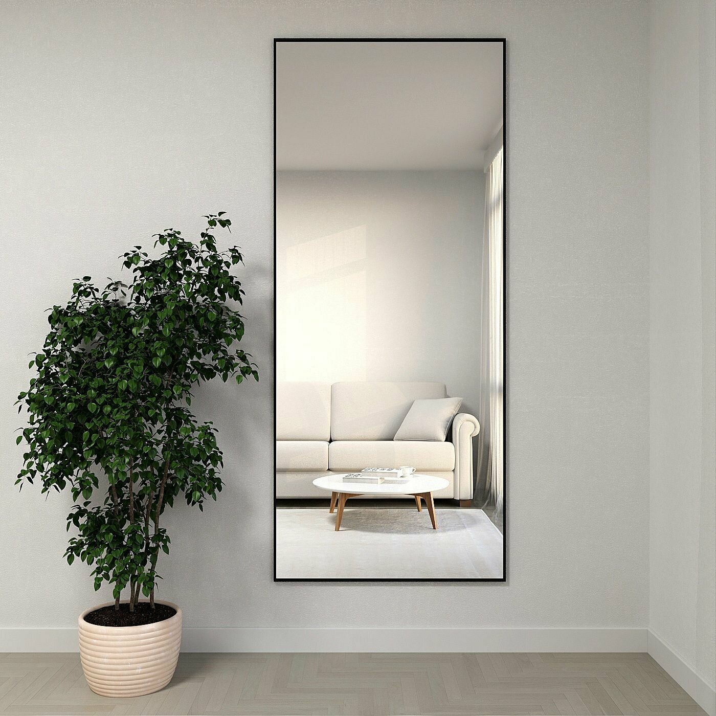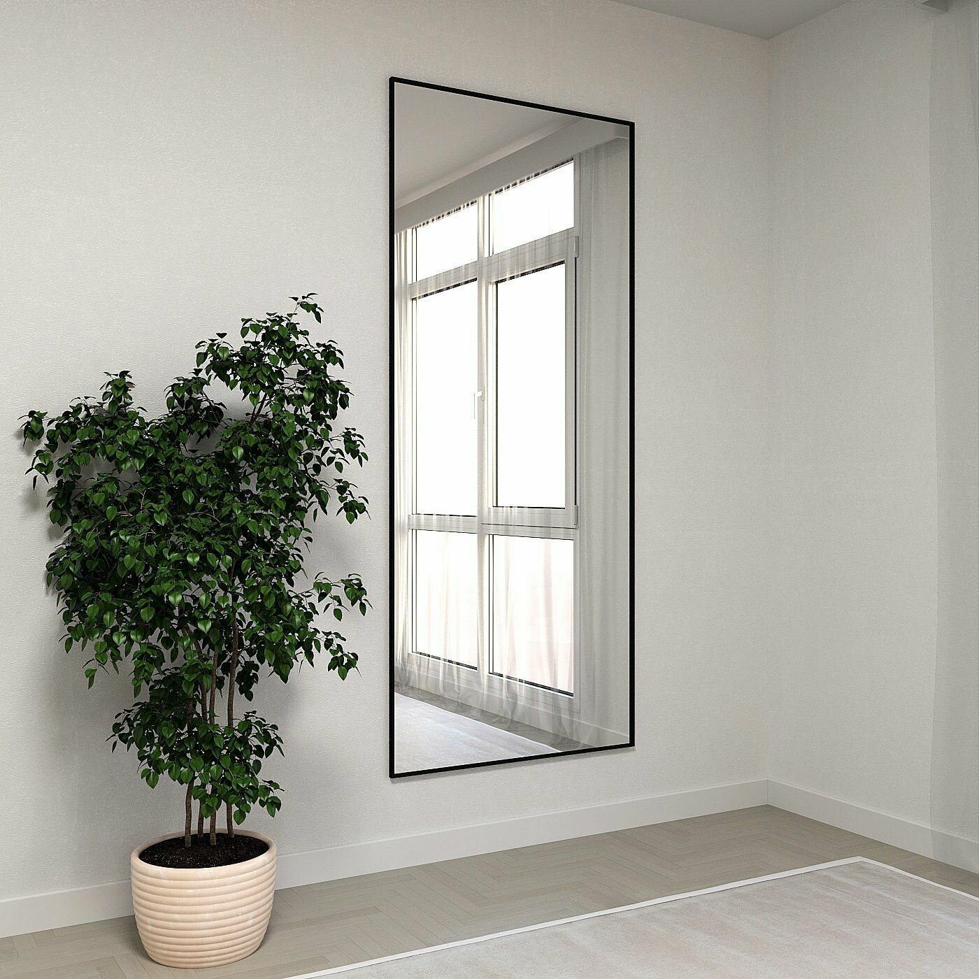 Зеркало настенное в алюминиевой раме ALUMIRROR, 170х60 см. Цвет: Черный 8 227 ₽
