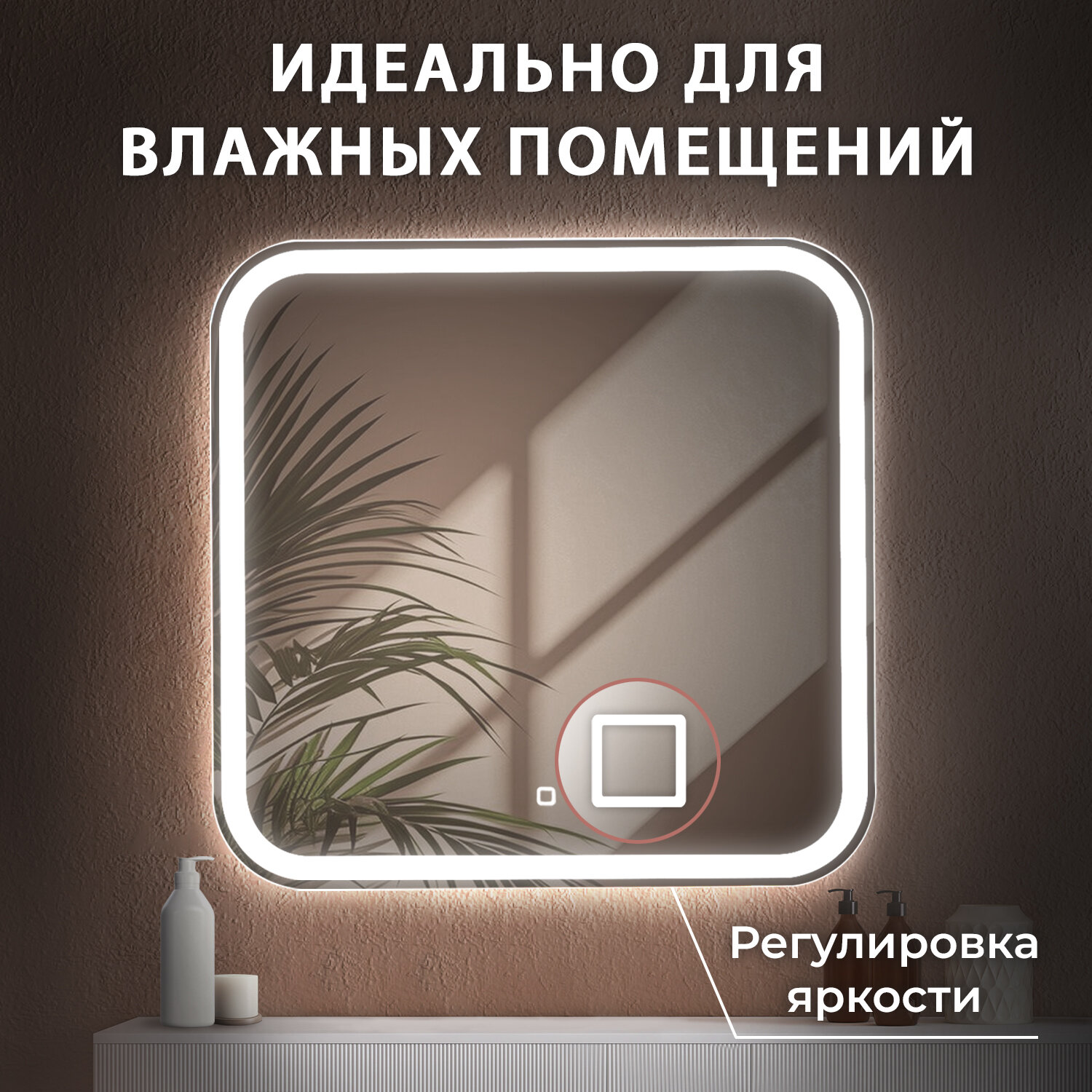 Зеркало для ванной комнаты Silver Mirrors "Джобс" с холодной подсветкой, сенсорным выключателем, 70x70 см информация: