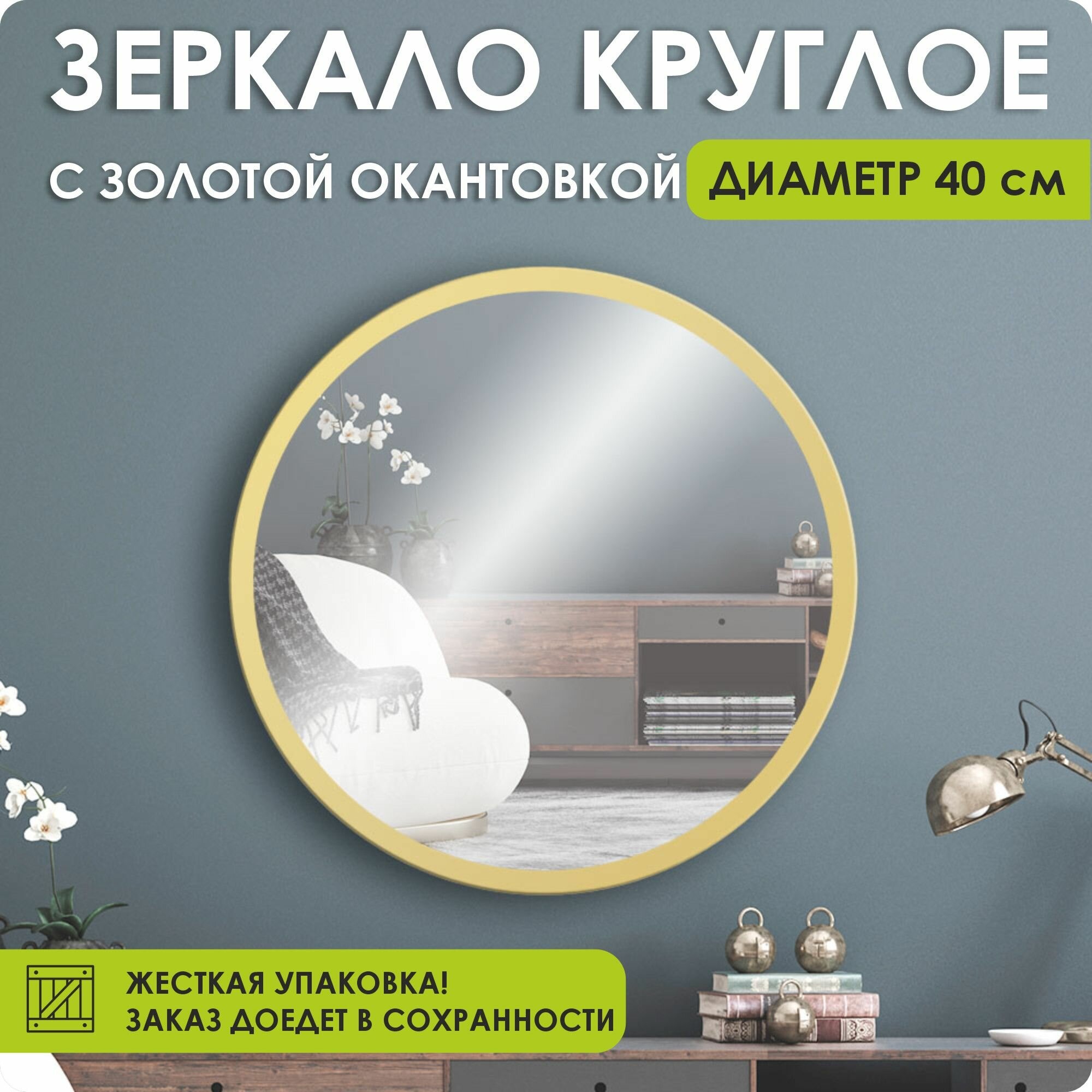 Зеркало настенное, зеркало, 40х40 круглое, золотое информация: