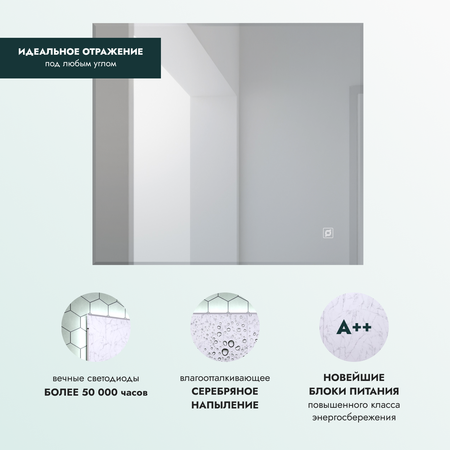 Отзывы на Зеркало с подсветкой орвието 80х90 см для ванной холодный белый свет 6000К сенсорное управление