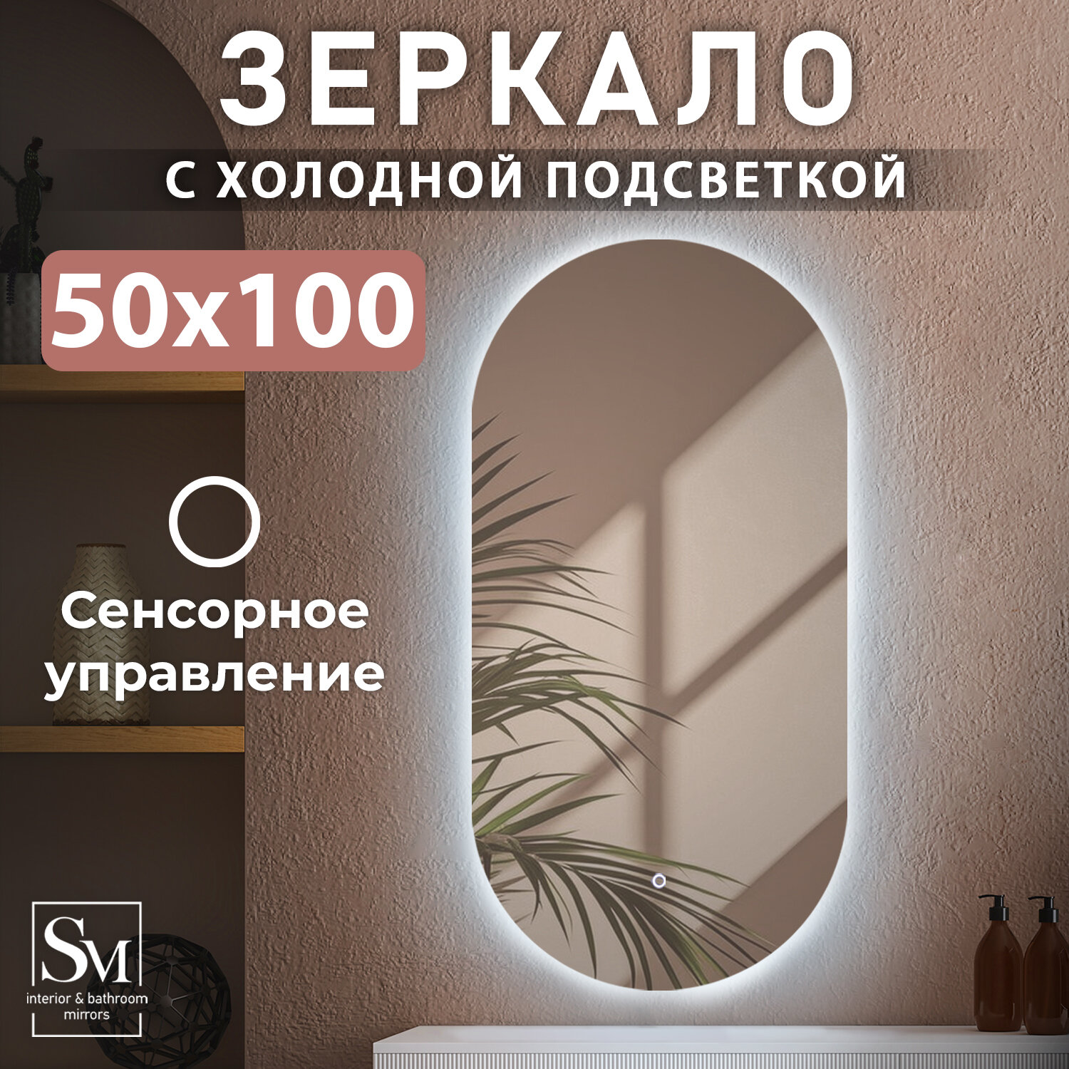 10 цен на Зеркало Гера lite 50х100 см (холодный свет 6000К, настенное в ванную, в прихожую, капсула, овал, ореольная подсветка, сенсорный выключатель)