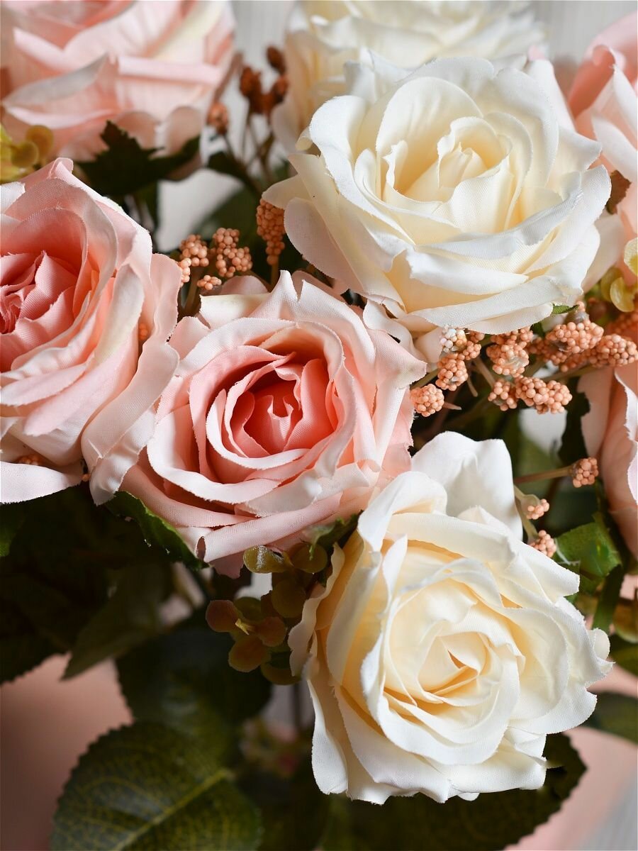 Букет роз "Botanique One", искусственные цветы, высота 42см, 9 веток, бело-розовый 926 ₽