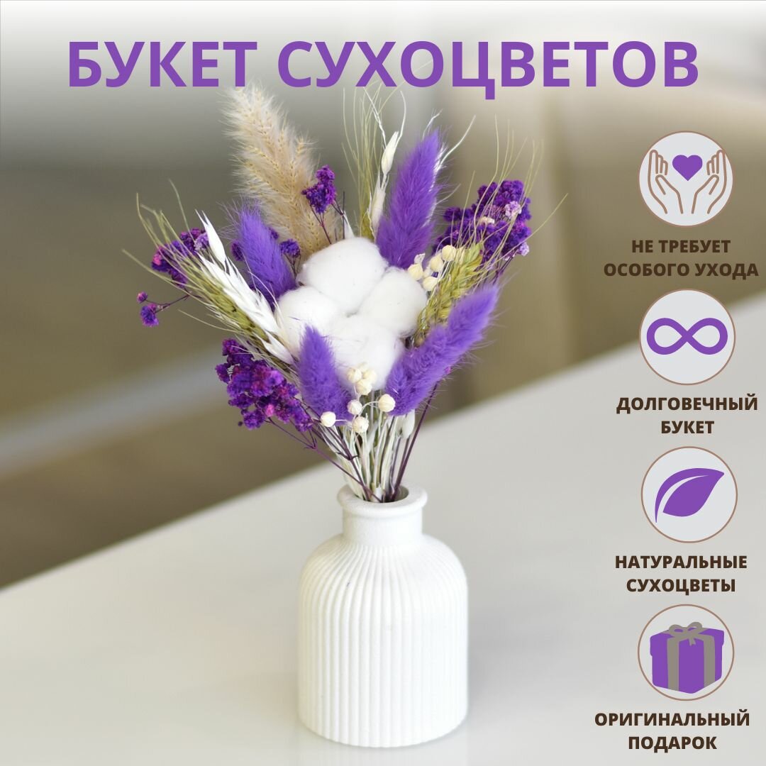 Букет сухоцветов Trava Decor комплимент в подарок, лагурус, гипсофила, хлопок 570 ₽